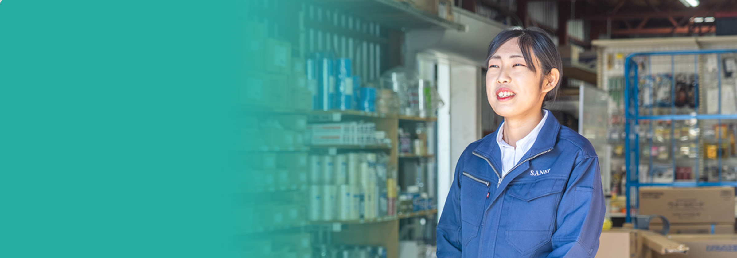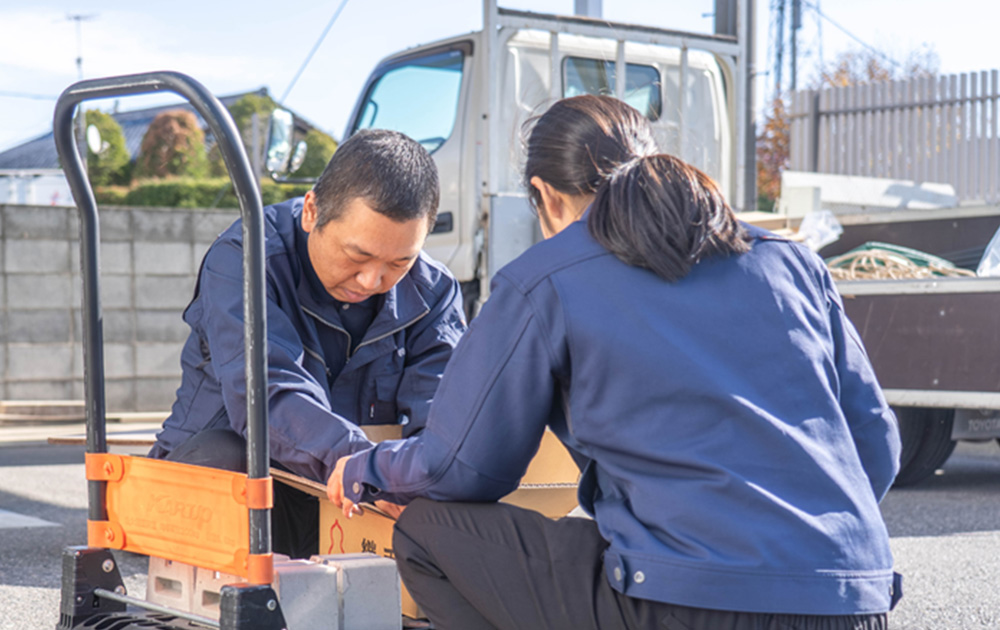 - お客様からいただいた注文の商品の準備や配達がメインのお仕事です。現場に直接配達することもあり、お客様と接する機会も多いので、商品に対する知識を日々勉強しています。