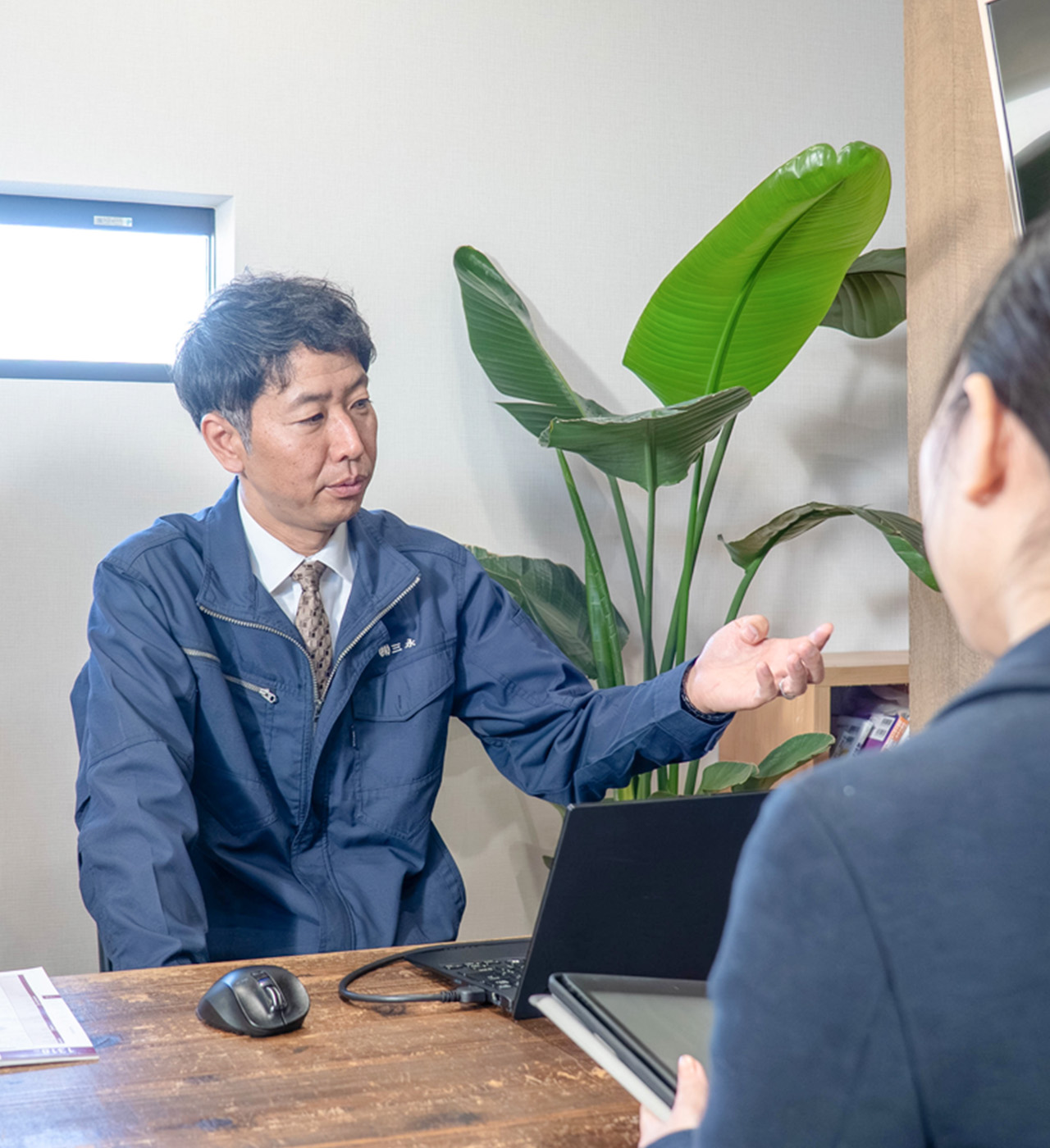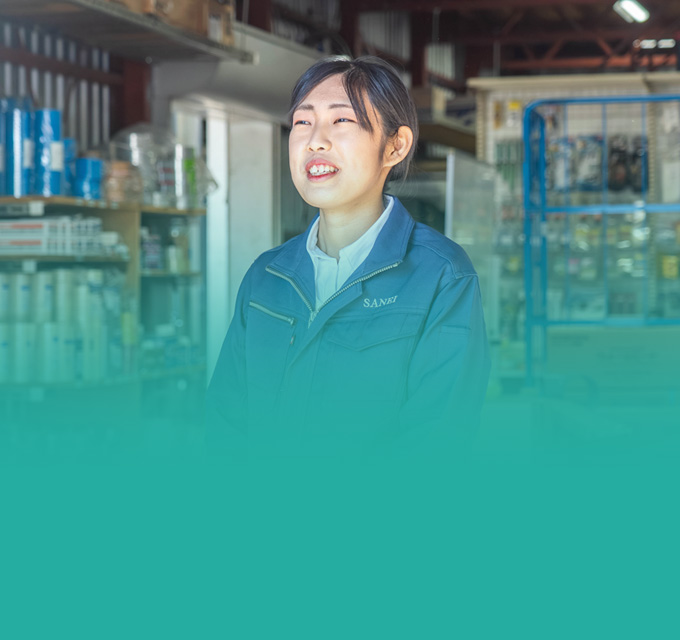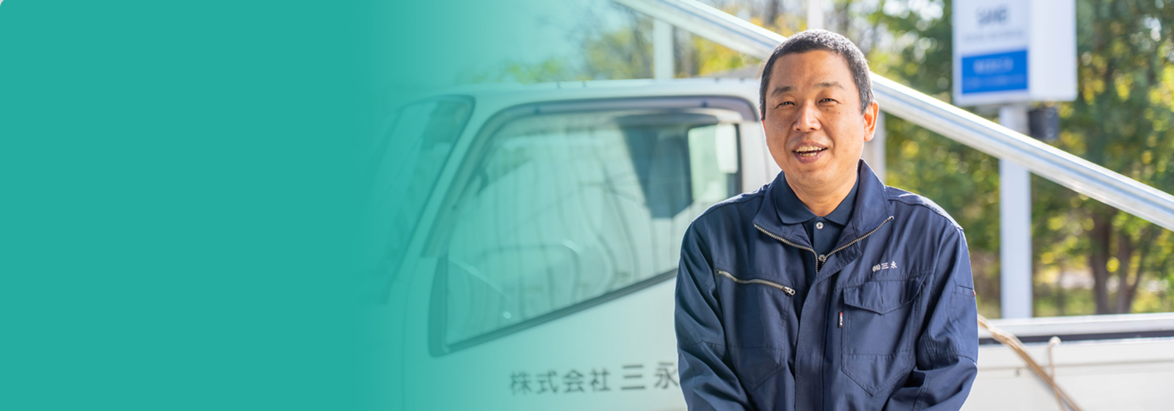 - 明るく、元気に、はきはきとしたあいさつを大切にして、お客様の笑顔を増やせればと思っています。それが、三永社員のみんなの笑顔にもつながると思います。